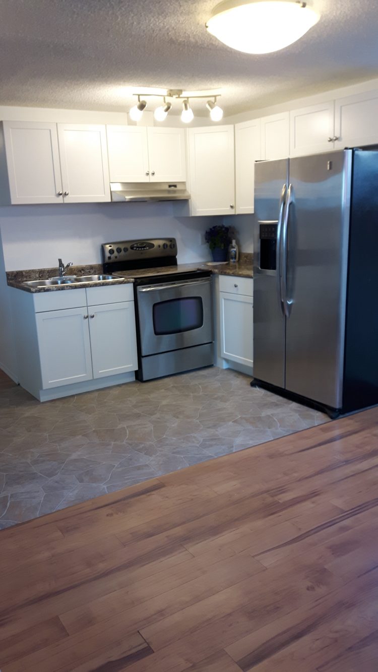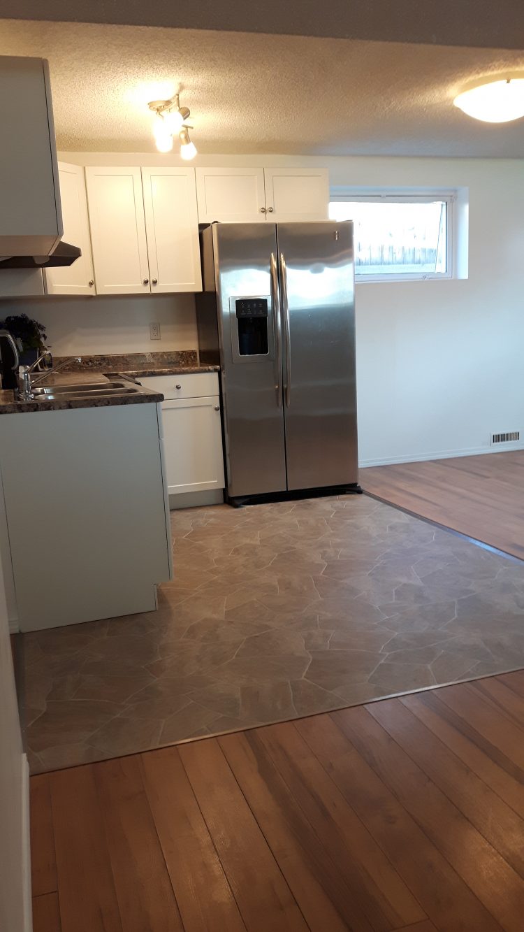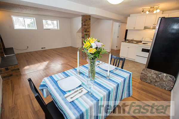 So much natural light in this 2 bedroom bi-level with windows above grade! Laminate floors, no carpet for reduced allergies, asthma and pets! Newer appliances, your own in suite laundry, NOT shared! Open concept kitchen, dining room and living room, 1090 sq ft. Electric fireplace with thermostat and 5 color and light speeds, you have your own heat control. Large sliding door closet in master bedroom, lots of storage. Renovated bathroom with full sized tub! Updated fixtures and electronic lockset. Easy access to Yellowhead, NAIT/Kingsway and downtown. Football fan? Easy to get to the Stadium. Quiet house, Walk score 75.